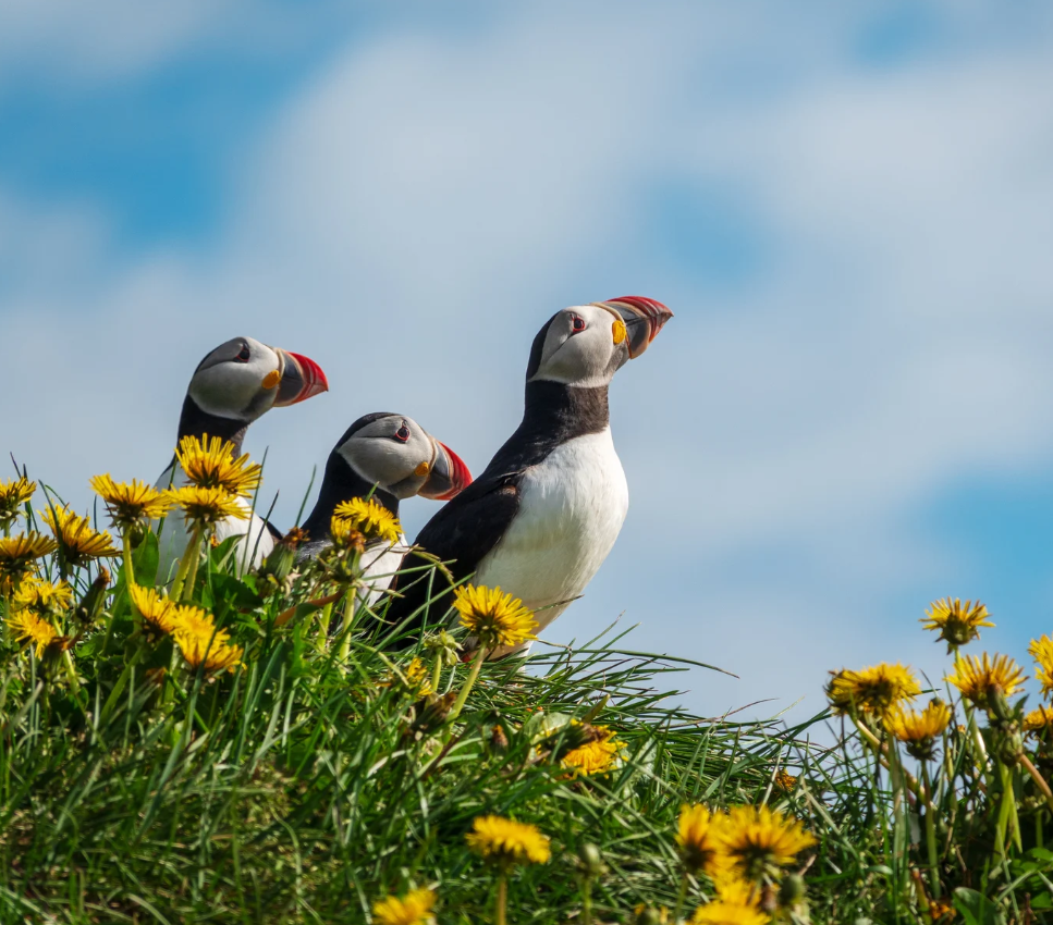 With its vivid orange bill, sleek black body, and signature yellow head plumes, the Tufted Puffin is one of Alaska’s most striking seabirds. These bold, charismatic birds nest in burrows along remote coastal cliffs and islands, where they gather in lively colonies during the summer breeding season. Tufted Puffins spend most of their lives on the open ocean and return to land only to raise their young. On your Alaska adventure, you’ll likely see Ancient Murrelet’s, Crested Auklet’s, Red-legged Kittiwakes, and other unforgettable seabirds.