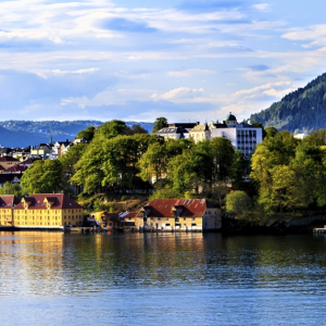 Your onward journey begins this morning with a ferry ride into the UNESCO World Heritage listed Naeroyfjord, the narrowest fjord in the world. This branch of the Sognefjord is spectacularly beautiful with its high peaks framing the narrow thread of water. Watch goats grazing along the banks and seals lying on the rocks before mooring at Gudvangen. Here, transfer onto a bus which will take you up the winding bends of the Stalheimskleiva to a lookout point above the Stalheimsfossen and Sivlefossen waterfalls. You'll make a brief stop to admire the view before continuing to Voss, where you transfer to the station for your onward train journey to Bergen. On arrival in Bergen, check in at your hotel for an overnight stay. You have an afternoon here to explore Norway's second city. Why not discover the colourful Hanseatic buildings of Bryggen and Vagen harbours or take the Flaibanen up to the top of Floyen for spectacular views? (Overnight in Bergen)