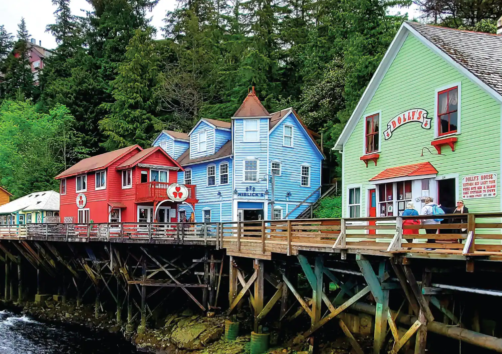 Alaska's "First City" of Ketchikan is so named because it’s the first major landfall for most cruisers as they enter the picturesque fjords of the Inside Passage, where the town clings to the banks of the Tongass Narrows, flanked by green forests nurtured by abundant rain. Ketchikan has long been an important hub of the salmon-fishing and -packing industries. Visitors can try their luck on a sportfishing or simply savor the fresh seafood at one of the local restaurants.
