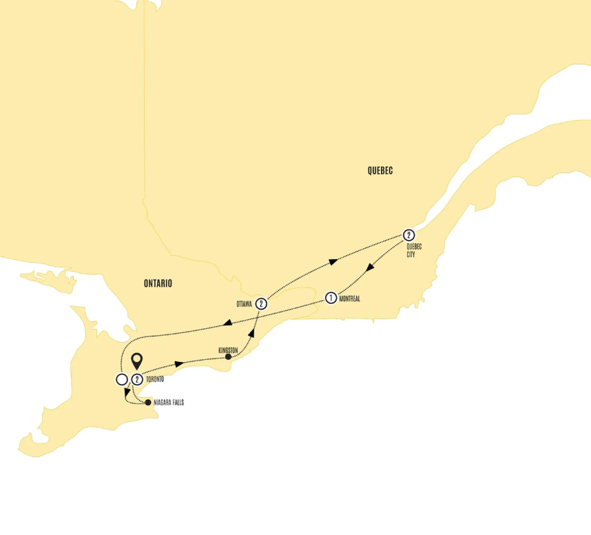 And just like that, you’ve experienced the very best of Eastern Canada. From Toronto’s trendy microbreweries to Québec City’s timeless romance, you’ll be finishing your trip this morning with happy memories, and no doubt a longing to see what the rest of Canada has in store. Leave Montréal at your own pace, or take it easy with a transfer back to Toronto where you will arrive at the Toronto International airport at approximately 16:00– the choice is yours.