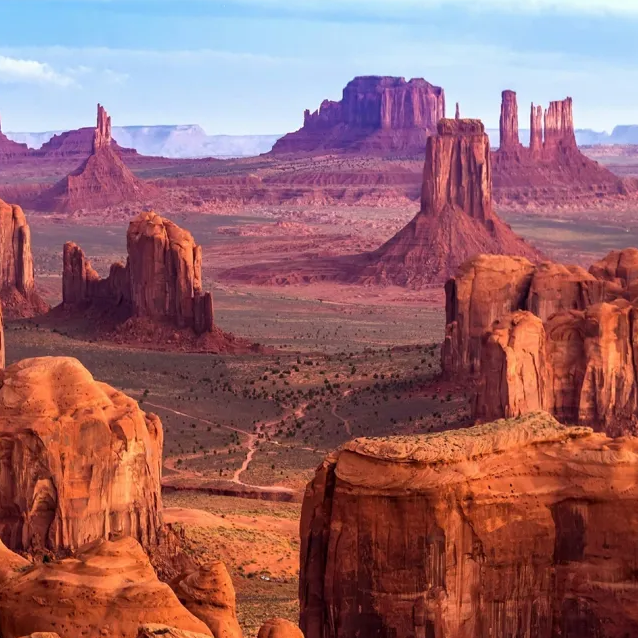 This morning before you depart your Flagstaff hotel, enjoy an Iconic Breakfast at Charly's Pub and Grill in the historic Weatherford Hotel, a location that hosted many famous guests, including William Randolph Hearst, in the early 1900s. Continue to Wupatki National Monument, a landscape dotted with over 2,700 pueblo ruins built by the ancestors of the Hopi, Zuni and Navajo people. After a stop at Cameron Trading Post, join a MAKE TRAVEL MATTER® Experience exploring Monument Valley in an open-air vehicle with a local Navajo guide. Immortalized as the setting for countless movies and TV shows, Monument Valley is an emblem of the Wild West, with its rusty red spindles and grand buttes.