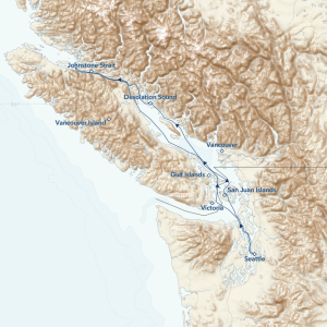 Visit the more remote of the San Juan Islands, an archipelago in northern Washington State perfect for kayaking, exploring by Zodiac and hiking. Walks with your expert staff will familiarize you with the natural and cultural history of the rugged northwest coast region. Tonight, enjoy the Captain’s farewell dinner.