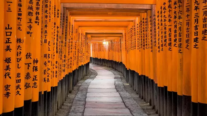 The blazing orange torii gates of Fushimi Inari Shrine guide our path through the forest, up into the mountains and to a sacred site that has heard prayers for prosperity and happiness since the 8th century. We continue to Sanjusangen-do Hall and admire the minute detail of each of its 1,001 “thousand-handed” goddesses of mercy statues, then enjoy a walking tour of the Gion area. This evening, we indulge in a Farewell Dinner with your Travel Director and fellow guests.