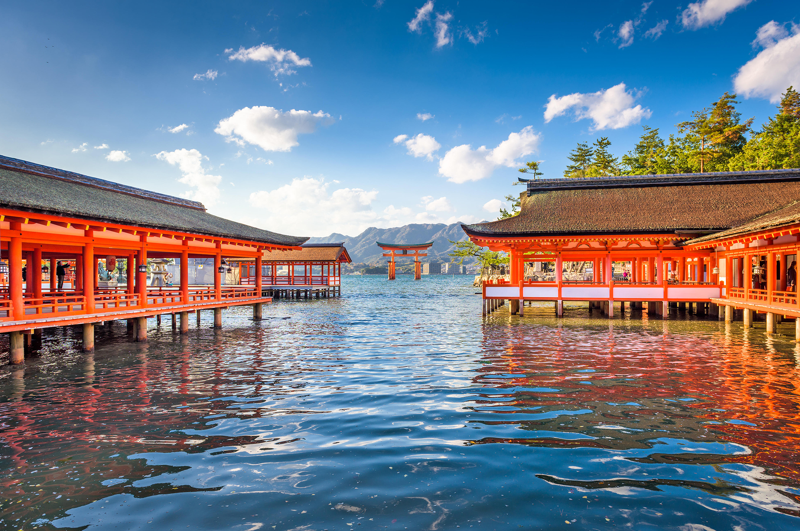 Traveling by rail from Kyoto and then by ferry, you’ll journey this morning across the island-dotted Inland Sea. Revel in the natural beauty of one of Japan’s most picturesque regions as you make your way to Miyajima Island to visit the incomparable Itsukushima Temple, established in the 6th century. Much of its present-day architecture dates to the 12th century, and it remains a spectacular sight. Built on piers over the bay, the shrine and its magnificent red Torii Gate appear to float over the tranquil waters during high tide.