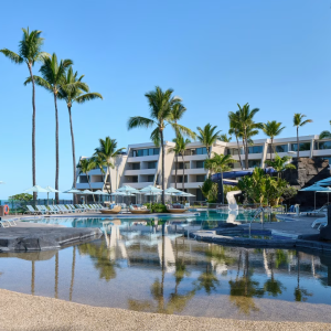 A legendary Kona resort reborn at Keauhou Bay. Perched on the cliffs offering spectacular ocean views. Newly renovated guest rooms, suites and meeting areas harmoniously unite the property's heritage with modern aesthetics. Oceanfront pool and water slide, offering family-friendly fun for both kids and adults. Feast & Fire, Kona’s premier luau experience, immerses guests in the culture and legends of the first Polynesians who set foot in Hawaii. Daily cultural activities provide an immersive journey into the vibrant history and traditions of Hawaii Island, showcasing a legacy of enduring Hawaiian hospitality. Partnered with the Pacific Manta Research Foundation, featuring Manta Talks and other ocean conservation events.