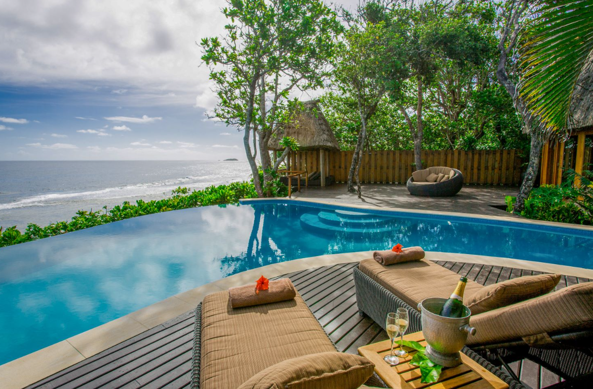 With an exceedingly high 4-to-1 staff-to-guest ratio, Namale specializes in crafting highly customized experiences, offering world-class cuisine and unique private dining options like romantic dinners in a candlelit sea cave or lunches next to a rainforest waterfall. With an adults-only atmosphere, Namale is a favorite among celebrities for its exclusivity and luxury. This resort offers gorgeous natural surroundings and an array of complimentary activities for guests to experience a unique combination of adventure and relaxation. Tranquil, private and exotic, Namale is the perfect hideaway for newlyweds, romantics and those just seeking their own South Pacific paradise. Each of Namale’s private, stand-alone bures and villas feature a unique footprint, and luxurious amenities like private pools, Jacuzzi spa tubs, and magnificent ocean views from spacious private decks. The resort also features a 10,000-square-foot spa and heart-shaped hot tub by the ocean.