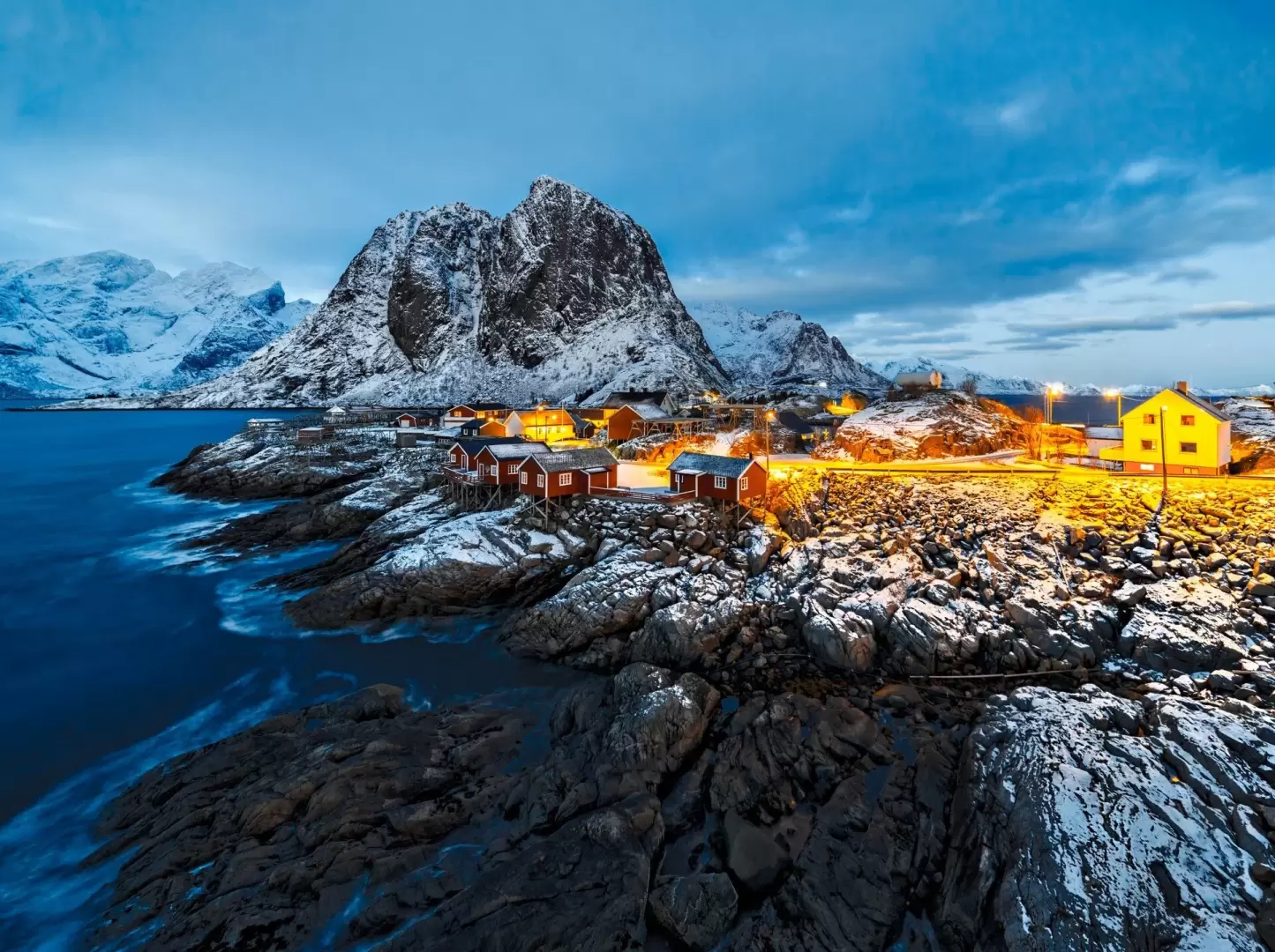 In the early hours of the morning, the ship crosses the Arctic Circle and enters the Arctic. Join the crew out on deck to mark the moment with a traditional ceremony that will be sure to wake you up fully! Above the Arctic Circle, your chances of spotting the majestic Northern Lights increase. As you call into the northern city of Bodø, gaze up at the snow-capped Børvass peaks before experiencing the fabulous street art this city has to offer. From here, continue across the Vestfjord and towards the Lofoten archipelago which greets you with the stunning sight of the 3,280 foot-high Lofoten Wall.