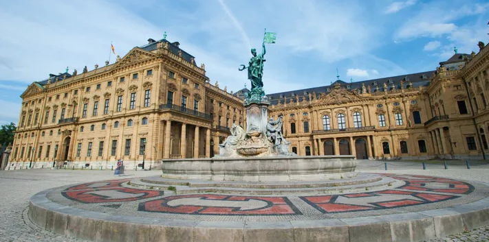 Surrounded by Franconian vineyards, Würzburg was heavily damaged during World War II, but has since been completely restored. This prestigious university city is a jewel of baroque architecture. Its most pristine example of pomp and glory is the great Bishops’ Residenz palace, built in 1744 for the prince-bishop; his unwavering support of artists is evidenced by the sweeping staircase and magnificent ceiling frescoes by Tiepolo. Other landmarks include the medieval, statue-lined Old Main Bridge and Marienberg Fortress, originally a Celtic hill fort and later residence of the bishops. The city remains a major wine-making center, hosting Germany’s oldest and largest vineyard.