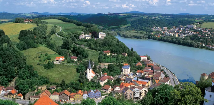 Founded by the Celts over 2,000 years ago, Passau is one of Bavaria’s oldest cities. Known as the “City of Three Rivers,” it rests at the confluence of the Inn, Ilz and Danube rivers. The city has long enjoyed its strategic position and grew to great economic and political power because of it. The legacy of its past prosperity lives on in graceful arcades, colorful houses with rococo facades and the glorious baroque St. Stephen’s Cathedral, home to one of Europe’s largest pipe organs. Passau is also where two nations meet; it is here that the German-Austrian border begins.