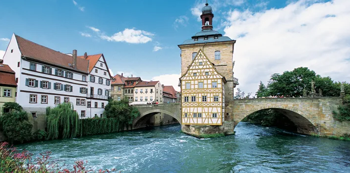 Founded in 902, Bamberg remains a medieval-looking city known for its symphony orchestra andrauchbier, specialty smoked beer. The city’s winding streets are filled with baroque patrician houses and are home to the stunning 11th-century Cathedral of Holy Roman Emperor Heinrich II, housing his tomb and that of Pope Clement II. Bamberg is especially noted for its Altes Rathaus, or Old Town Hall, situated on a twin-arched bridge over the Regnitz River, and for the old bishop’s houses: the 16th-century Alte Hofhaltung (Old Court) and 17th-century Neue Residenz (New Residence).