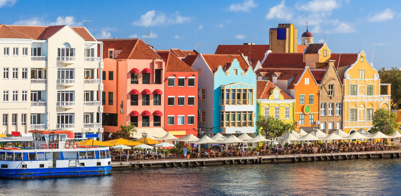 Historians still contend over which European adventurer first spied the largest island in the former Netherlands Antilles. Some historians claim the honor for Alonzo de Ojeda; other historians champion Amerigo Vespucci. Little does it matter; today's travelers are content to bask beneath sunny skies cooled by the trade winds. Lying some 40 miles off Venezuela, Curaçao boasts a landscape that is dramatic, stark, and volcanic. In contrast, Willemstad, the capital, seems a cozy Dutch haven with its neat row houses. And while those gabled and tiled roofs illustrate the island's heritage, the bright, pastel houses speak pure Caribbean. Islanders themselves reflect this same colorful contrast: over 50 different nationalities have come to call Curaçao their home.