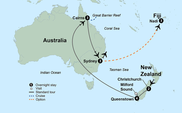 See what life is like “Down Under” on this incredible journey through New Zealand and Australia. Experience Queenstown, the “Adventure Capital of the World.” Cruise Lake Wakatipu and enjoy a lakeside BBQ. Cruise Milford Sound and Sydney Harbour. Discover the wonders of Aboriginal culture. From the ethereal beauty of New Zealand's glacial fjords to the tropical splendor of Australia's Great Barrier Reef, enjoy the best of the South Pacific.