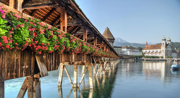 Drive via the scenic Italian Lakes District, across the Alps into beautiful Switzerland, where we'll spend the next two nights in the medieval lakeside city of Lucerne. View the mournful, mortally wounded lion hewn from rock to commemorate the Swiss Guards who lost their lives defending Louis XVI. Walk along the flower-lined 14th-century covered Chapel Bridge, crossing the river Reuss.