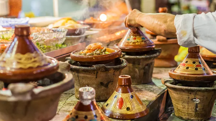Blending effortlessly into the arid landscape, Ouarzazate has provided a backdrop for such famous movies as 'Lawrence of Arabia', 'Cleopatra' and 'Gladiator'. See the UNESCO-listed fortified village of Aït Ben Haddou in the High Atlas Mountains. Meet a local Imam and his family to learn about living in the region before continuing through the Tizi-n-Tichka Pass to Marrakesh - the 'Red City'. Like many other former imperial cities in Morocco, Marrakesh comprises an old fortified city - the Medina - and an adjacent modern city. Marrakesh is home to Morocco's largest traditional souk (market).