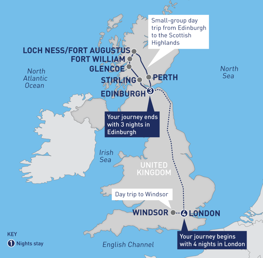 No visit to Scotland is complete without exploring the magnificent beauty of the Highlands! Take a small group daytrip to the rugged, mythical corners of the country, stopping off at Loch Ness - famously the home of the elusive monster of the same name! Explore the historic battle sites of Glencoe, Stirling Castle and Fort Augustus and spend free time exploring the wonderful wilderness to your heart's content before returning to Edinburgh for another night at your hotel. (Overnight in Edinburgh)