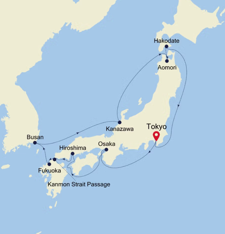 Experience the beauty of Japan’s blossom season with this exceptional voyage. A round trip from Tokyo, an overnight in Osaka allows you to witness the iconic mankai, Japanese for full bloom, followed by spectacular sakura in Hiroshima. Marvel at the magic of Fukuoka’s 1,300 cherry blossom trees. A stroll around South Korea’s Busan will delight you, along with captivating flower displays in Kanazawa, Aomori and Hakodate.