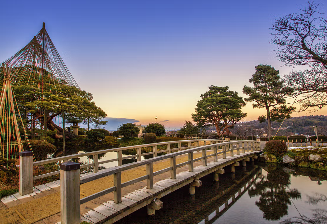 The capital of the Ishikawa Prefecture, Kanazawa once rivaled Kyoto and Edo (Tokyo) as a town rich in cultural achievements. Kanazawa escaped destruction during World War II and accordingly has been able to preserve many of the old districts in good shape. The city is famous because of Kenrokuen. Located next to Kanazawa Castle, Kenrokuen is classified as “One of the Three Gardens of Japan”. The garden has an artificial pond, and hills and houses are dotted within the 11.4 hectares. It has Japan's oldest fountain using natural water pressure and a teahouse dating back to 1774. Close by is the Higashi Chaya Gai Geisha District, designated a National Cultural Asset and the biggest of the Geisha districts of Kanazawa. Some of the houses not only retain the original structure but still are used as Geisha houses. Some of the streets have traditional shops creating a nostalgic atmosphere. Kanazawa is also known for its lacquer ware, Kutani-style pottery, gold-leaf workmanship, and delicately painted silk kimonos.