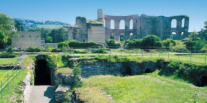 The historic heart of Trier, the bustling and colorful Hauptmarkt is the city’s main gathering place and a rich repository of architecture. Once the center of trade in medieval Trier, the square is anchored by an ornate fountain featuring St. Peter, the city’s patron saint. In addition, the unmistakable white- and mustard-colored tower of St. Gangolf Church rises above the square, resplendent with late Gothic and baroque elements. Perhaps the Hauptmarkt’s most distinctive building is the Steipe, named for its short pillars. Today, the pedestrian-only Hauptmarkt is a colorful canvas of baroque, Renaissance and classicist styles that mingle seamlessly with modern shops and cafés.