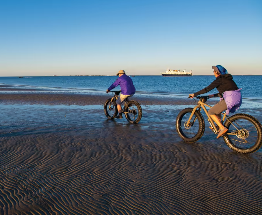 Wake up anchored at this small fishing village, surrounded by the open Pacific to the west, Magdalena Bay to the east, mangroves to the north and mountains to the south. With a population of 85, Puerto Magdalena is the only inhabited area of Isla Magdalena. Meet a local resident and learn how his family has lived off the area since the 1800s—from lichen harvesting to managing an open-air cantina, where you’ll enjoy local bites and beverages. Time permitting, visit the desalinization plant that supplies fresh water to the community. Get active on a fat-tire bike ride or, conditions and tide permitting, a kayaking excursion through the mangroves in Man of War Cove.
