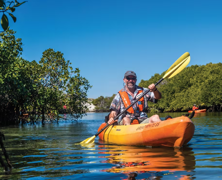Take in the scenery and watch for pods of bow-riding dolphins as the ship navigates this winding canal. Within its narrow channels, bordered by mangroves and sand dunes and filled with abundant wildlife, join your keen-eyed naturalists on deck to spot species and hear expert commentary. Weather permitting, explore the vast mangrove system by kayak and Zodiac. Bird-watching can be excellent here, with various seabirds and shorebirds patrolling the beaches as they fatten up and prepare for long journeys to their summer breeding grounds. You might see anything from diving pelicans and wheeling cormorants to terns, great blue herons, ibis, whimbrels and willets.