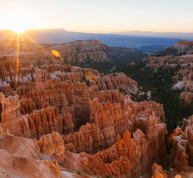 Have we saved the best until (almost) last? That will be the question on everyone's lips as you venture into Bryce Canyon National Park, where repeated freezes and thaws of the park's landscape over millions of years have created fascinating formations. Stand in amazement in front of the multicoloured ‘hoodoos' and vast amphitheatres, then take a stroll along one of the many juniper-lined trails to the viewpoints hugging the rim of the Paunsaugunt Plateau. Choose to join an optional horseback ride into Dixie National Forest where you may spot 1,500-year-old Bristlecone Pine trees along the way. Then opt for a fun evening at Ebenezer's Bar & Grill where you’ll enjoy a hearty barbecue dinner with all the fixin’s while taking in live music from the local Bryce Canyon Wranglers.