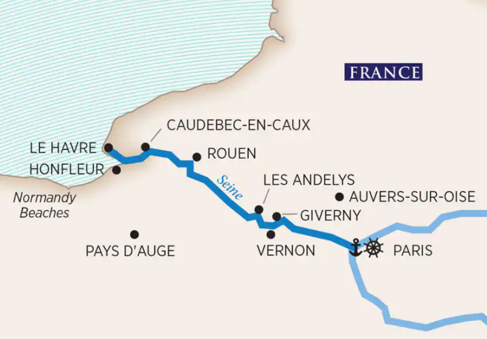 Board the ship in Paris for your Paris & Normandy cruise.