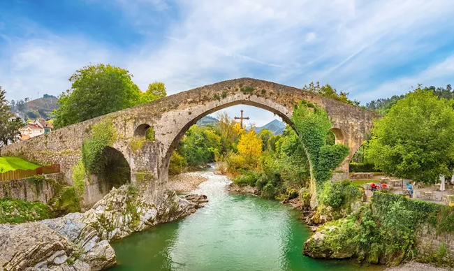 Visit the Holy Cave of Covadonga, a shrine to Pelayo, who achieved the first Christian victory over the Moors in 722. See the unique Roman bridge in Cangas de Onís as you head into the foothills of the Picos de Europa, a national park boasting spectacular mountain and gorge scenery.