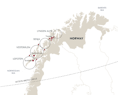 For the next seven days you’ll be exploring four distinct regions, each with its own outstanding features and unique beauty. The first such region you’re likely to visit is Lyngen.