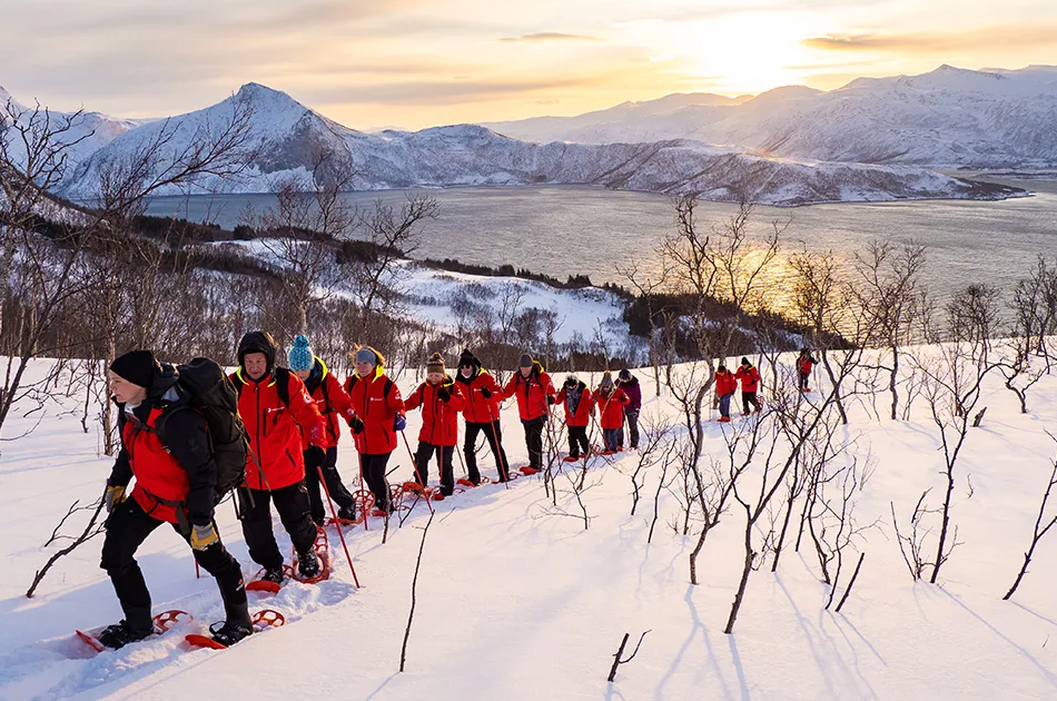 The scenic Lyngen area is a landscape of jagged, snowy mountains, and a magnet for winter activities. Lyngenfjord is over a hundred miles long, and you’ll spend your time here going on nature landings, hiking, snowshoeing, kayaking and, if conditions allow, spotting whales from the small expedition boats or the ship’s deck.