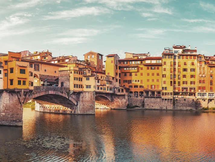 Enjoy breakfast in the hotel and then return to Santa Lucia station for your train to Florence. On arrival in Florence, make your way to your hotel and check in for a two-night stay. Once you get your bearings, start exploring this beautiful and historic city. A good place to start is the Ponte Vecchio, the oldest and most famous bridge over the Arno River, filled with shops and connecting the famous Uffizi museum to the old Medici Palace. After dinner at one of the many fine restaurants in the area, enjoy a Florentine gelato, considered by many to be the best in the world. (Overnight in Florence)