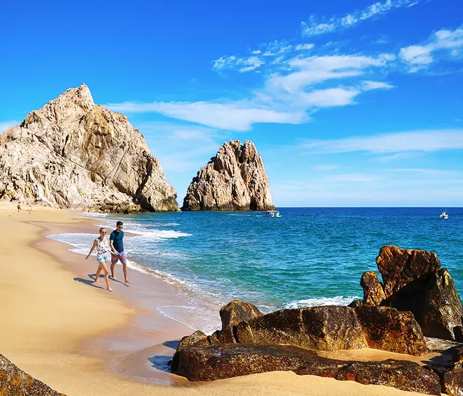 Explore Baja's quintessential seaside town — check out Iglesia de San Lucas, a Spanish missionary church dating back to 1730. Then, see the majestic, photo-ready rock arches on the tip of the Baja California Peninsula. Take in views of clear ocean waters and desert-like landscapes on the coastline of the Sea of Cortez, or relax on the sands of Playa Medano before popping in for a margarita at an oceanside watering hole.