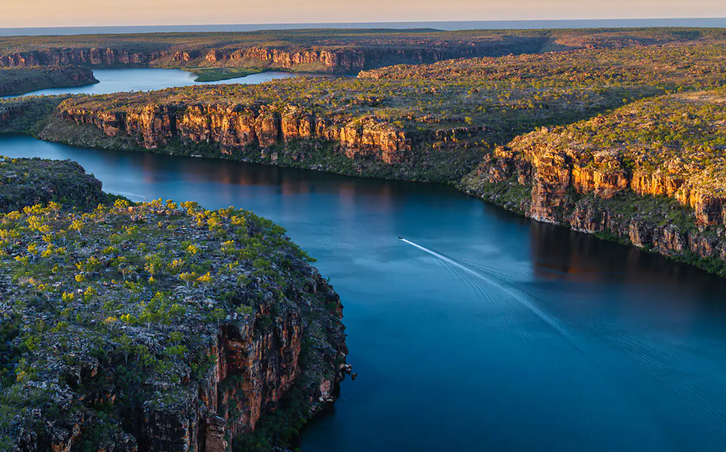 Explore the King George Falls, the two highest twin waterfalls in Australia at 250ft in height. The river was named in 1911 by explorer Charles Conigrave after a privately funded expedition in the area. The river is named in honor of King George V. This incredible sandstone gorge is a highlight of any Kimberley Expedition.