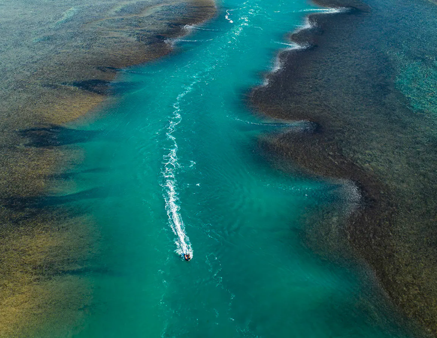 While the tide is going out, the waterfalls attract migratory wading birds, feeding turtles manta rays, black tipped reef sharks and dugongs.