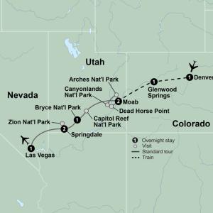 Back onboard Rocky Mountaineer, continue your scenic train ride enjoying stunning mountain views as you cross the Colorado-Utah border. Red rock sandstone landscapes emerge as you make your way to Moab, Utah's outdoor adventure center and the gateway to Arches and Canyonlands National Parks.