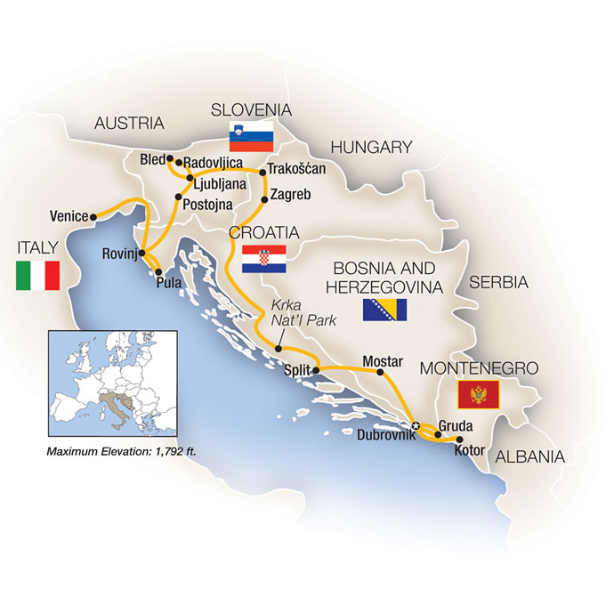 Travel from Croatia to Venice, Italy, today, arriving in the "City of Canals" midday for a walking tour and a visit to the Doge's Palace. Tonight, join a farewell dinner, where you can reminsice amongst your fellow travelers of the adventurers you just had.