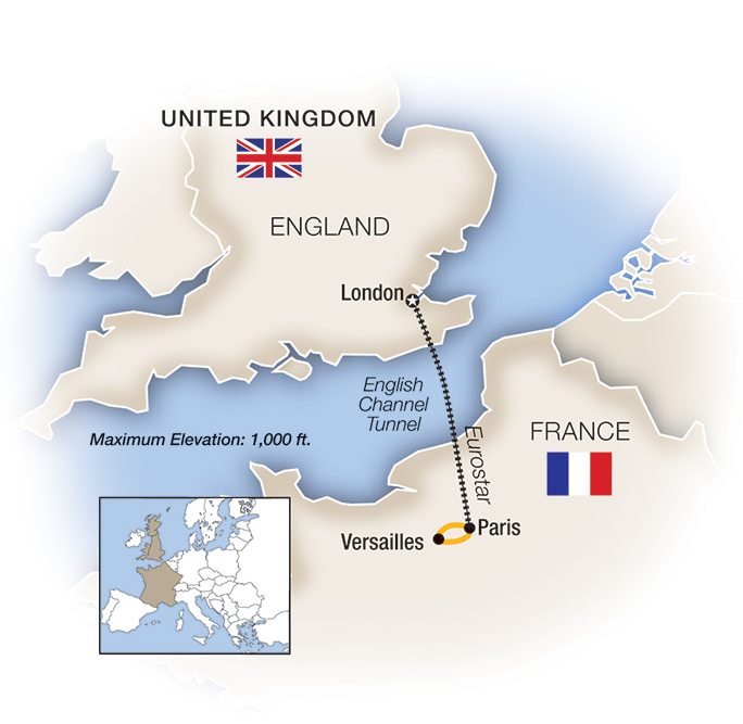 Hop aboard the high-speed Eurostar train from London to Paris which takes you under the English Channel through an underwater tunnel for 20 minutes of your two-hour ride from England to France. Sightseeing with a local guide starts as soon as you arrive in Paris when you take a walking tour from your hotel. And tonight... a magical evening with a special magique show.