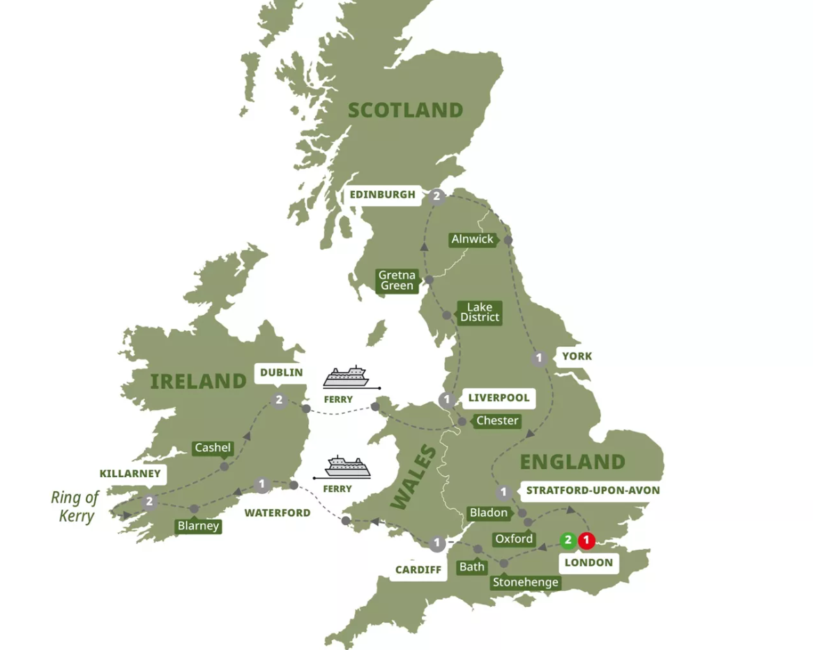 All the highlights and some special travel surprises feature on this in-depth journey around the UK and Ireland. Feel the pride of the Welsh people, see the seat where Irish kings once ruled and sample a pint of the favorite local brew during a tour of the Guinness Storehouse in Dublin.