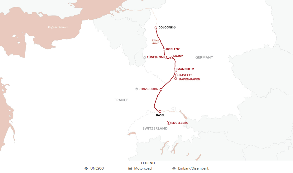 Arrive at EuroAirport Basel-Mulhouse-Freiburg. If your cruise package includes a group arrival transfer, or if you have purchased a private arrival transfer, you will be greeted by a Uniworld representative and transferred to the ship.
